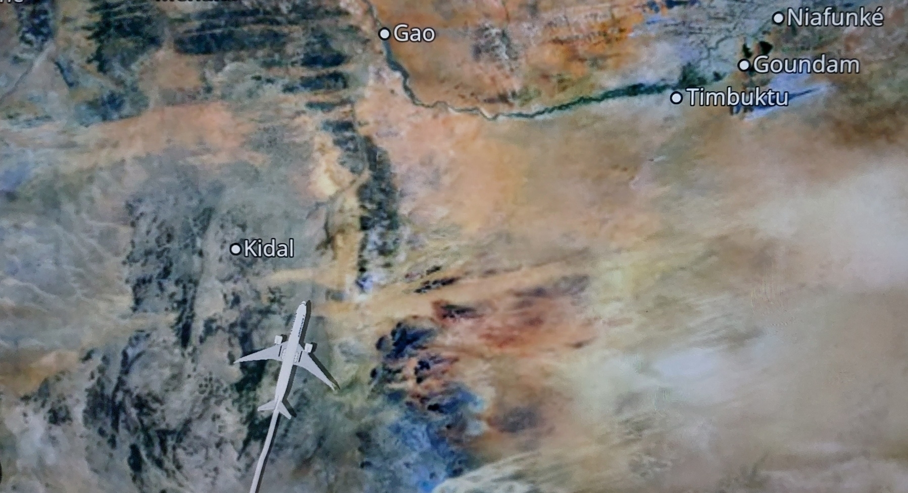 Most of the passengers in the cabin were asleep by the time we passed Timbuktu. It was too far away to see. There was only blackness below and an occasional speck of light: maybe the campfire of a caravan of camels?