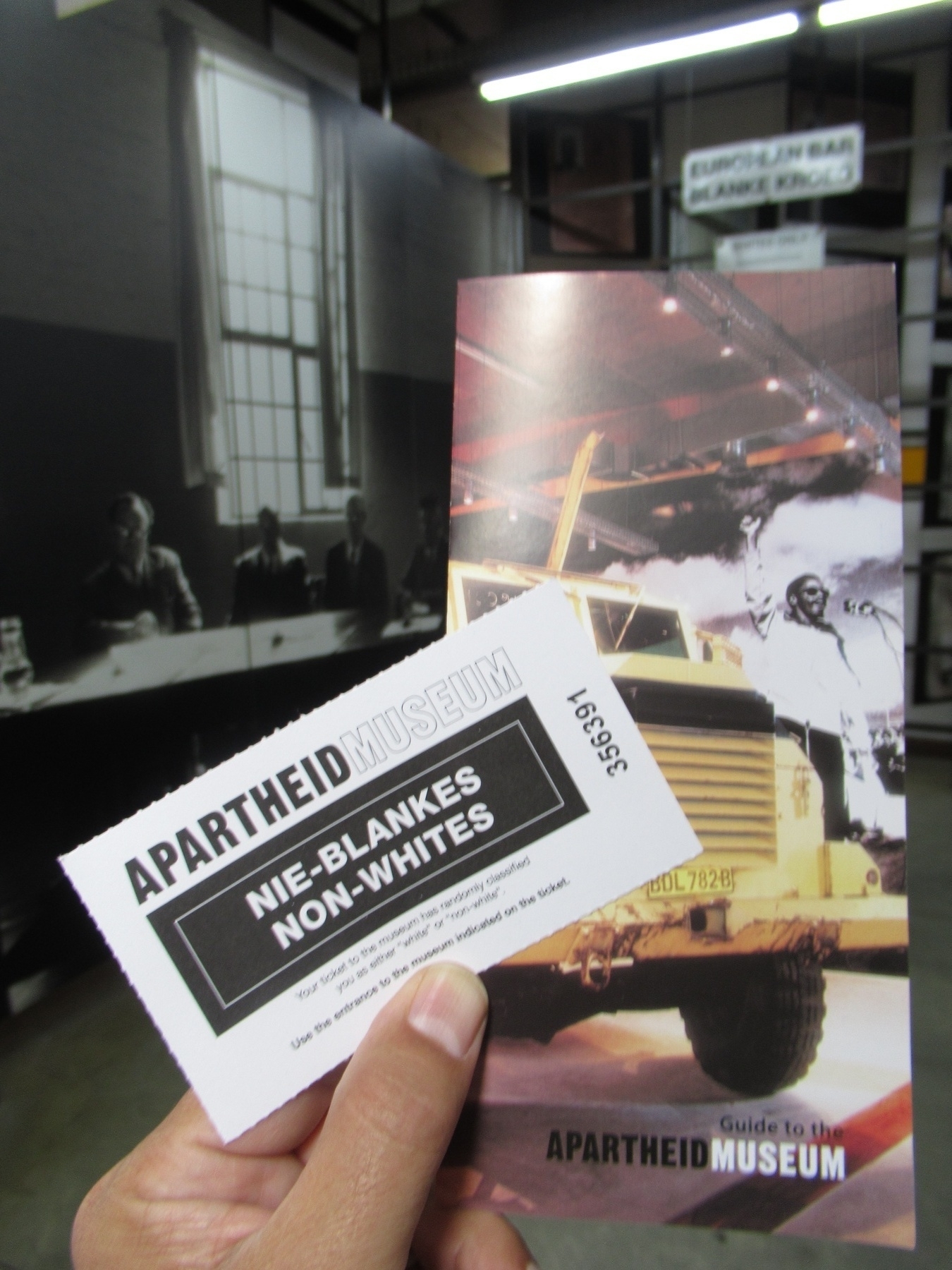 Paid a visit to the Apartheid Museum. You’re given a ticket that assigns you to a social class and you enter through different doors depending on what you got.