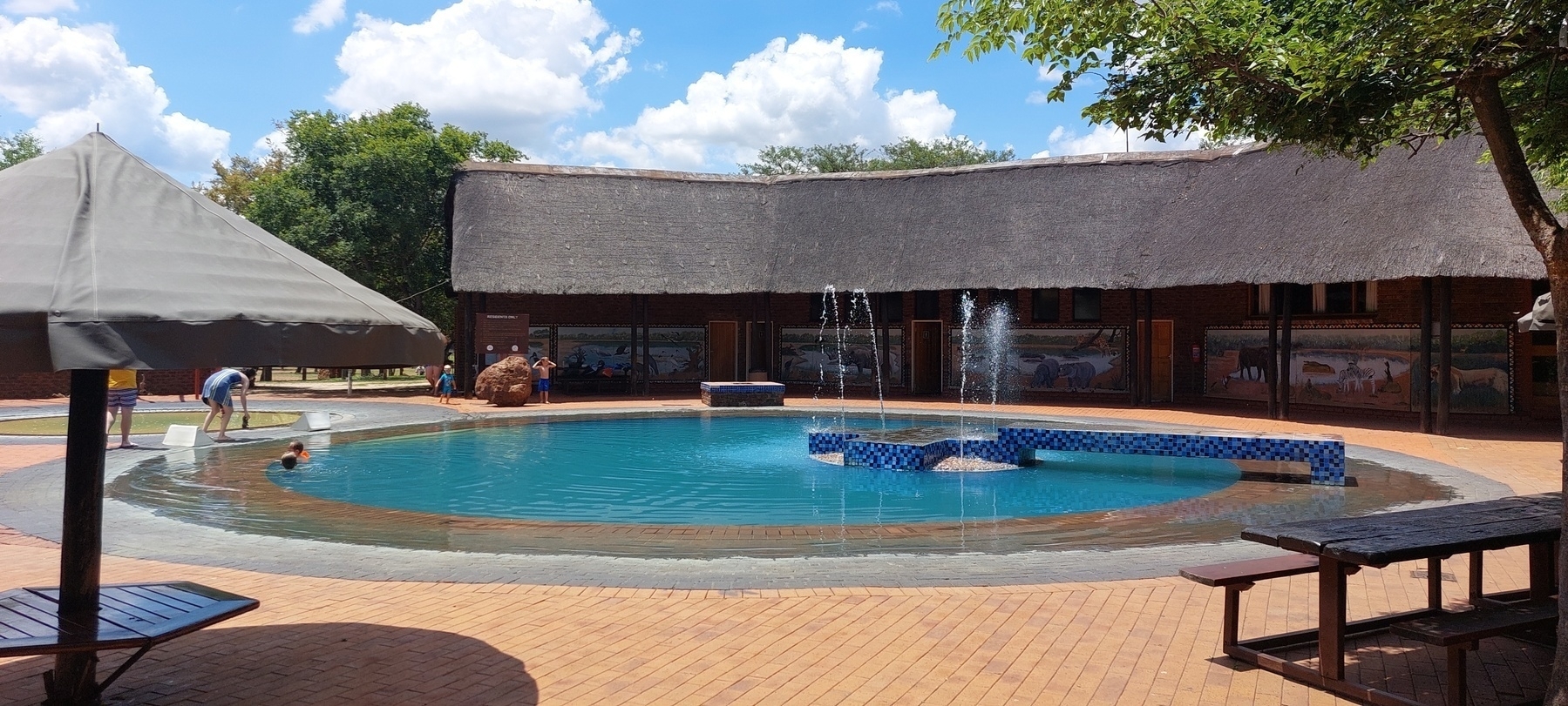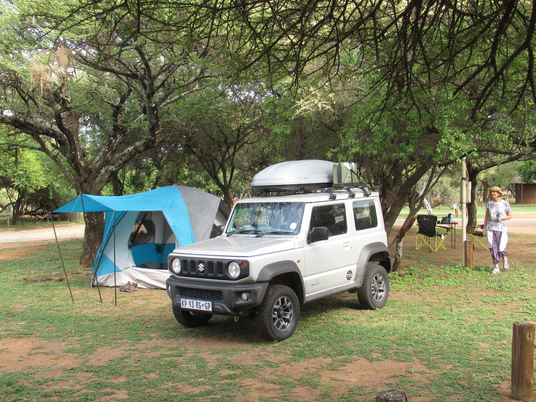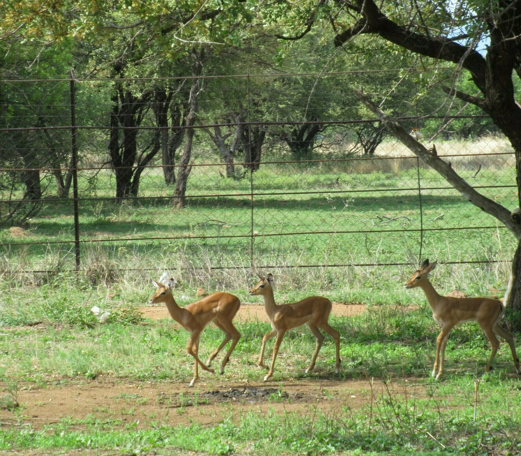 Now it was time to bring out all the gear that came with our rental and set up in a protected campground. Nearby was a restaurant and pool and many interesting birds. A herd of springbok lived up to their name when chased by naughty young boys.