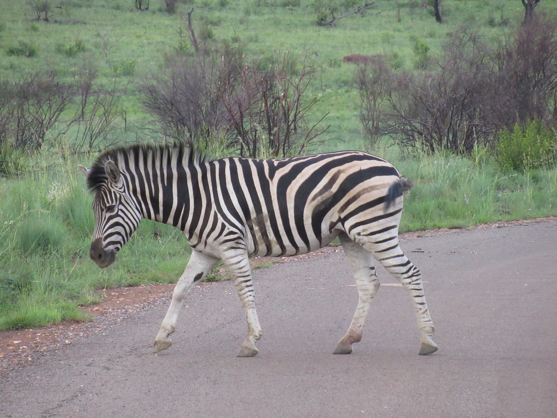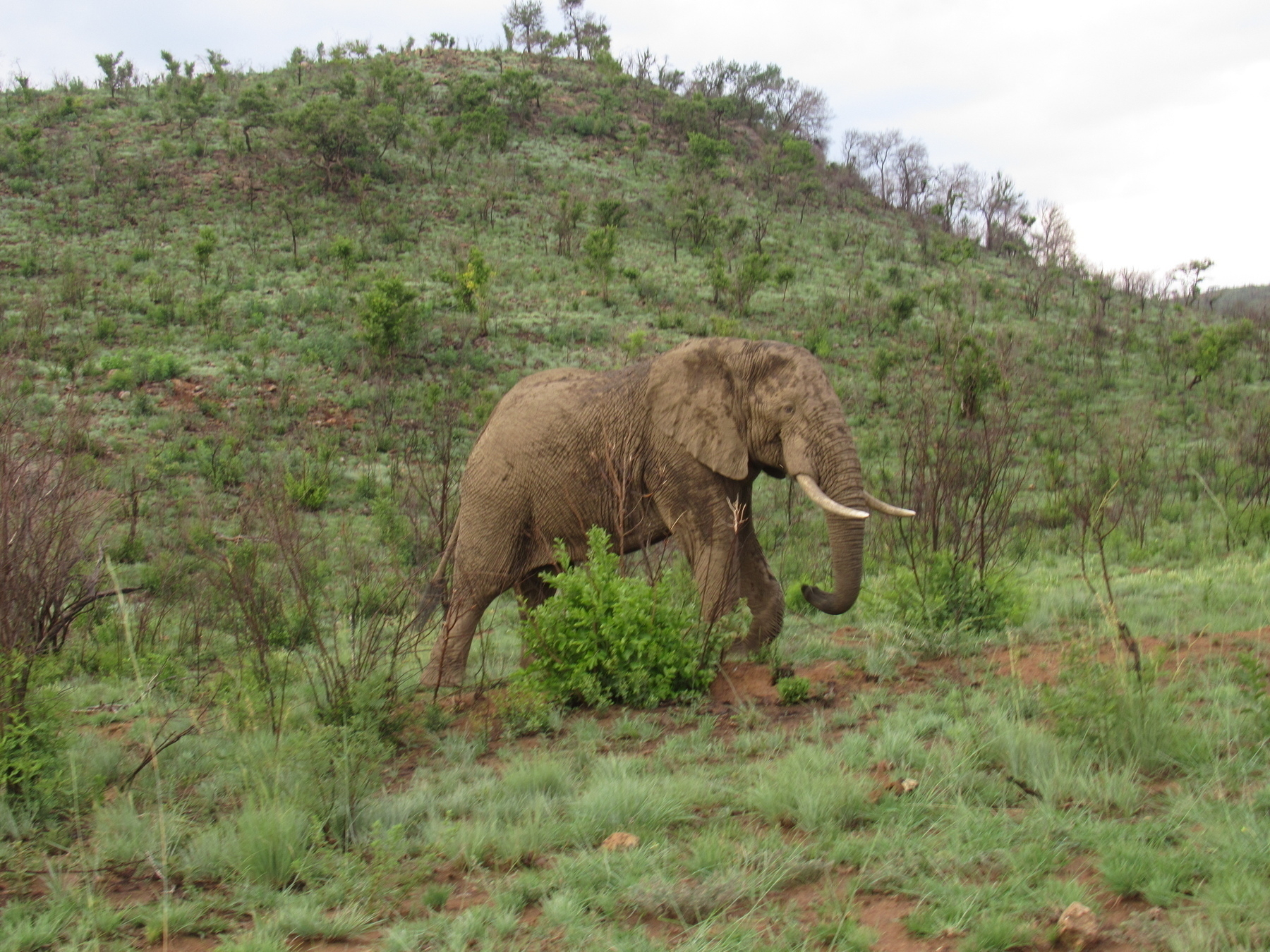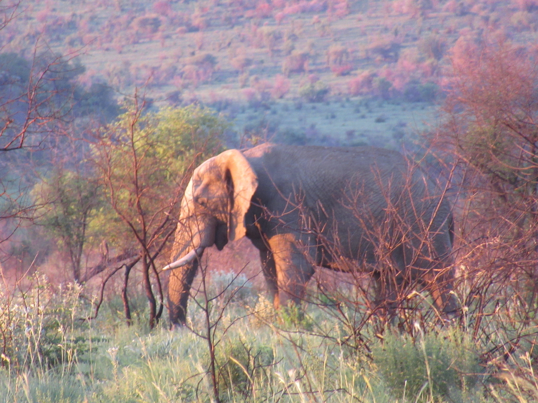 That first evening after setting up camp we took the Jimny back into the park for a quick look before the gates were closed. In just an hour of touring we saw gnu, zebra, springbok, another type of deer, and finally the mighty elephant. Look out, he wants to cross the road!