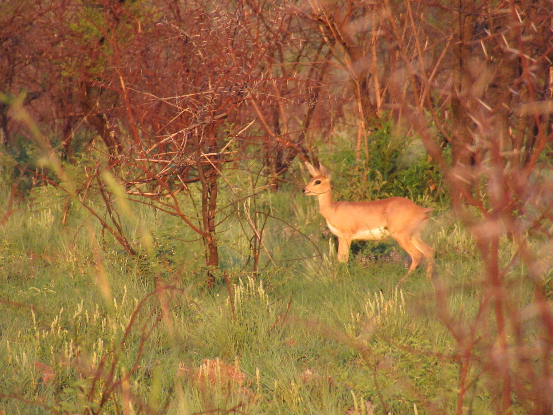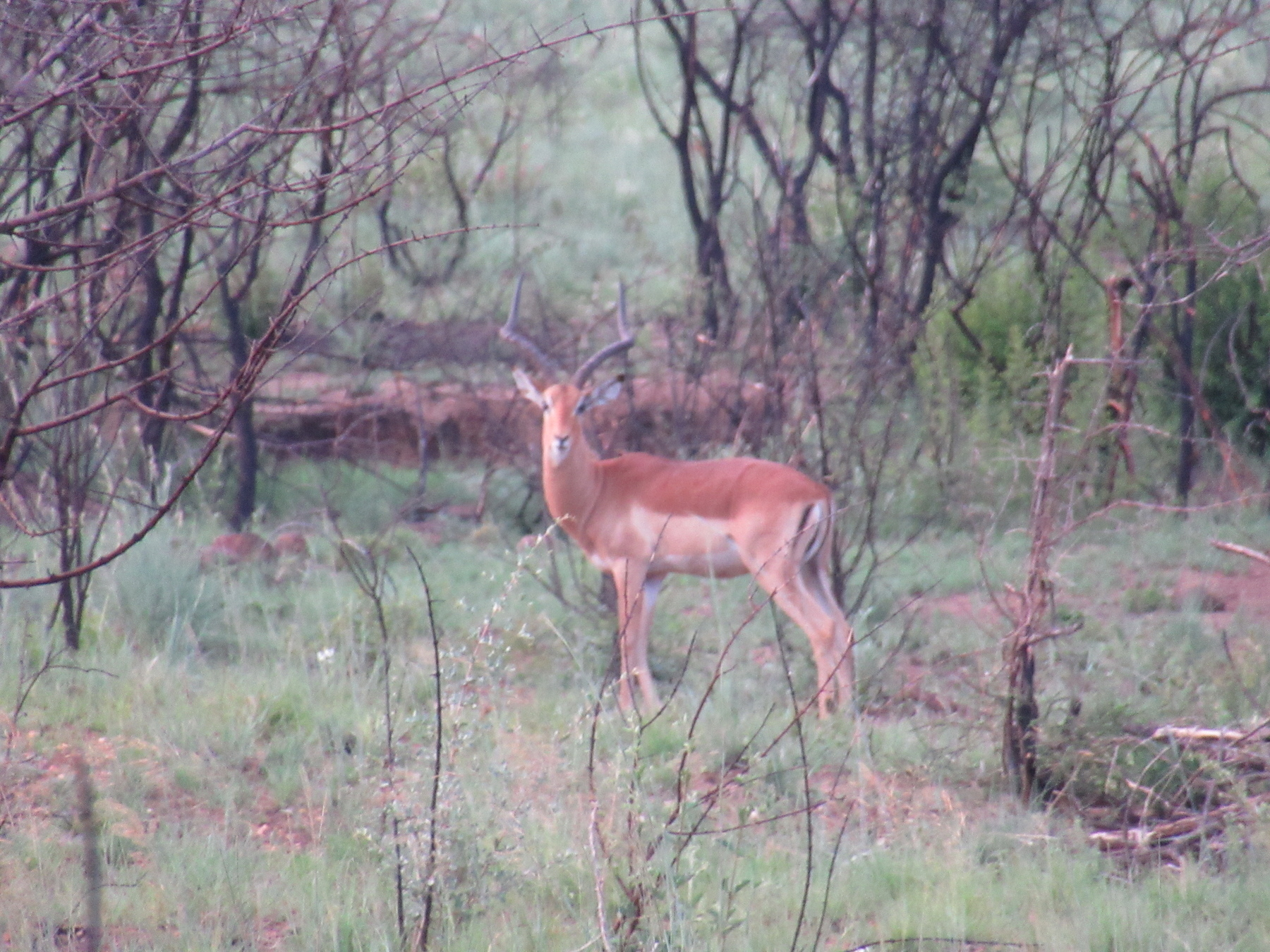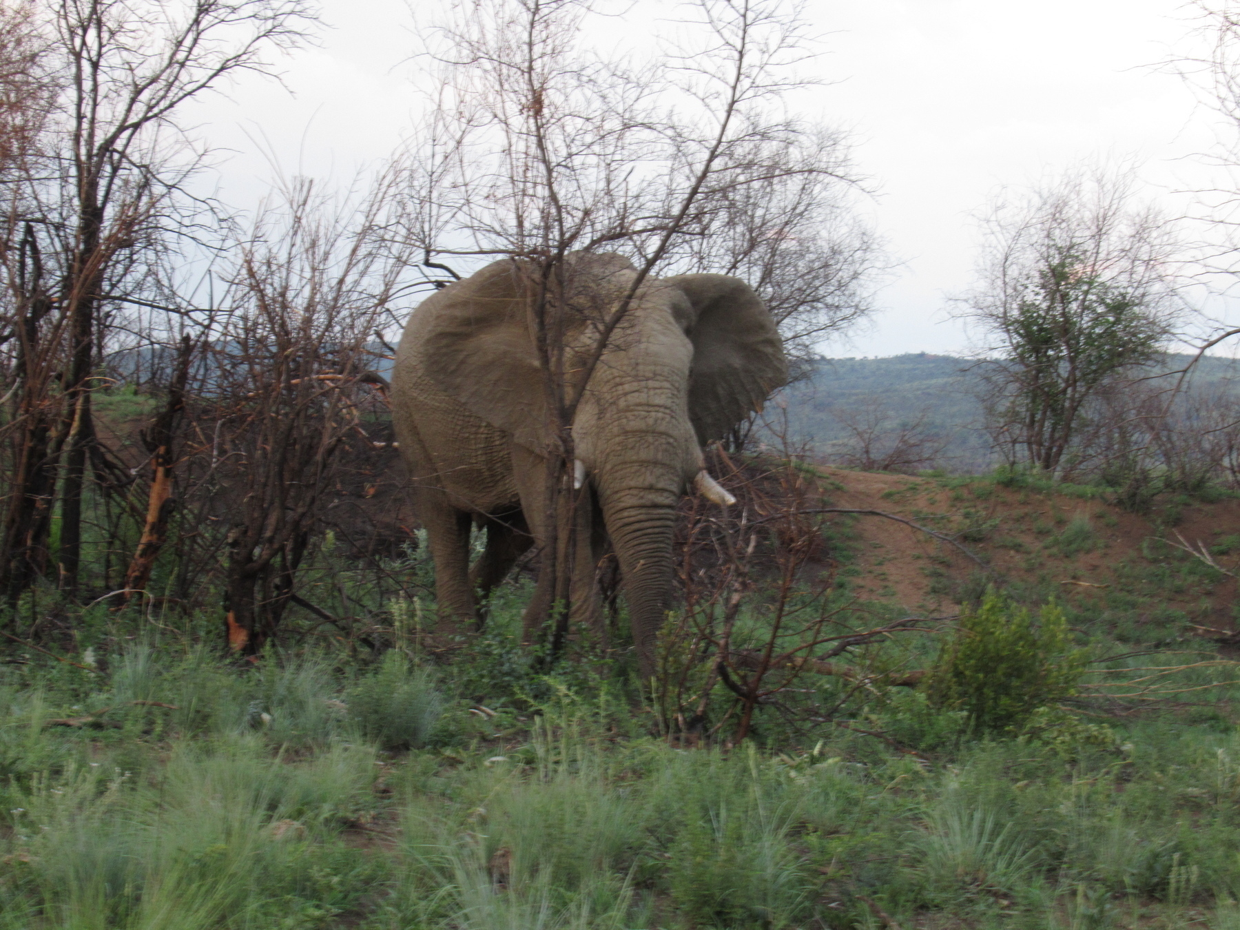 That first evening after setting up camp we took the Jimny back into the park for a quick look before the gates were closed. In just an hour of touring we saw gnu, zebra, springbok, another type of deer, and finally the mighty elephant. Look out, he wants to cross the road!