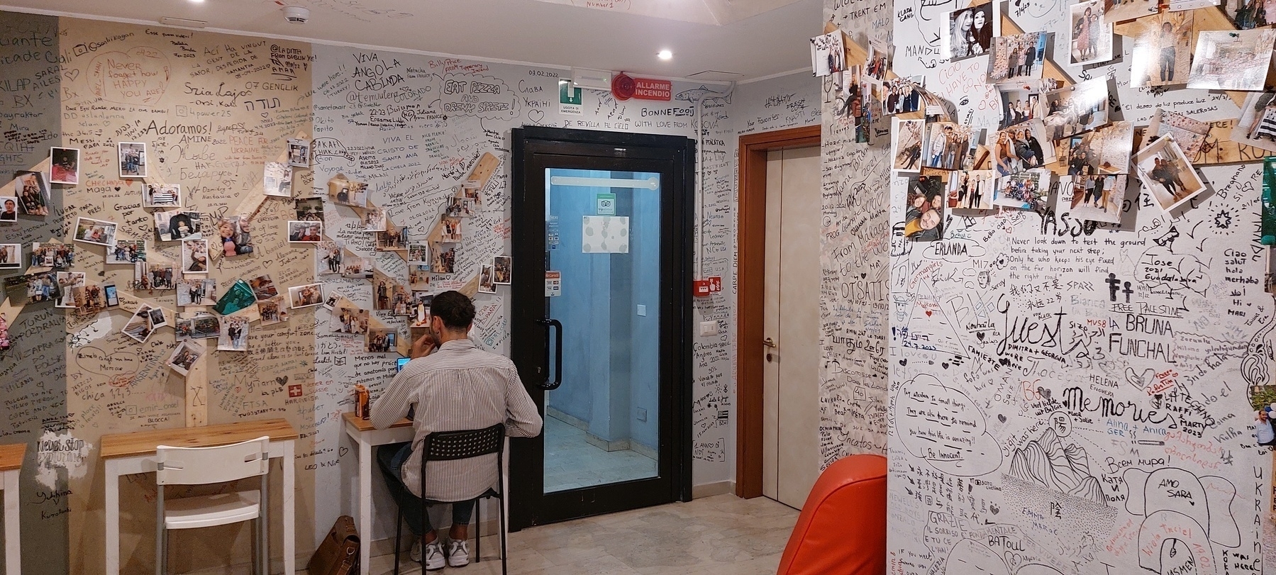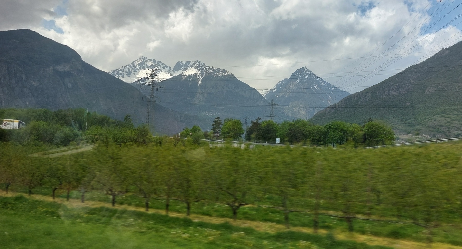 Monday we left Lyon for Geneva, where we caught a train through the beautiful tall snowy Alps to Italy. But there was a malfunction and we got stuck in Brig for several hours. Arriving after dark in Milan we had only just enough time to find dinner before settling into bunks at a grungy hostel.