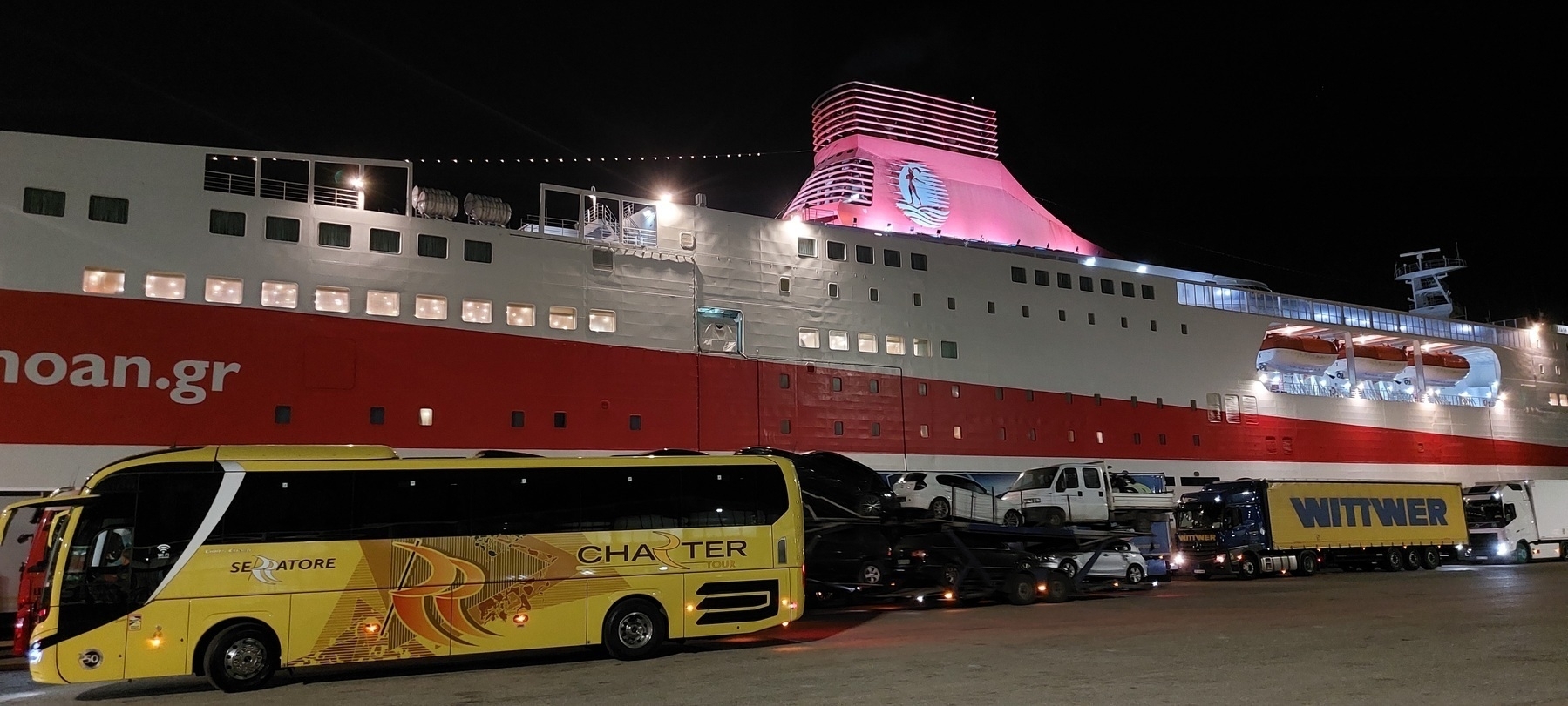 That evening we arrived at Brindisi. We made our way to the port and boarded the big Grimaldi ferry for an overnight crossing to Greece. There were not many passengers and almost all were teenagers so after a large cafeteria dinner we just hit the bunks for some much needed sleep.